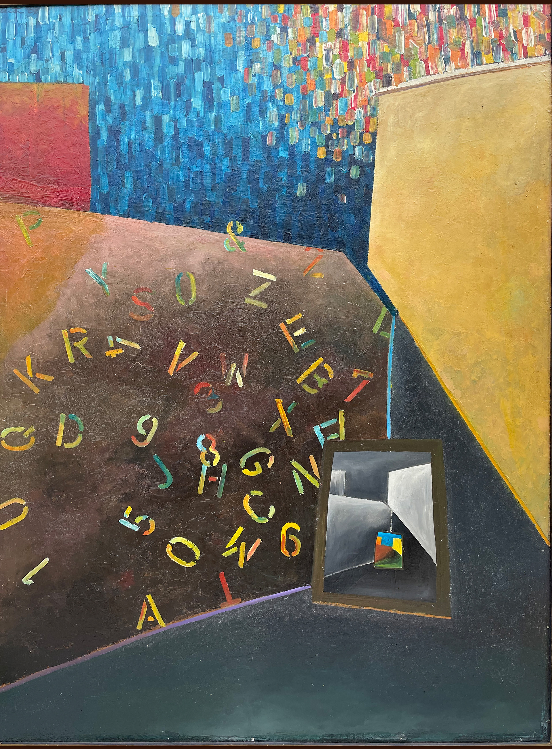 This picture also originally comes from the eighties. It was painted with a fairly worn brush on a piece of old tent canvas. I don't know where this picture went, but a photo is still there. Same process: photo scanned, repainted with digital brush.